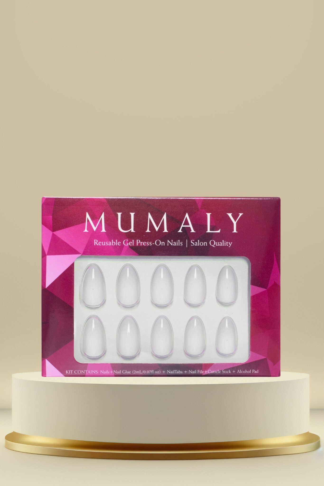 MUMALY kynnet on tehty geelistä, mikä takaa geelikynsien kestävyyden ja tekokynsien mukavuuden. Nopea, näyttävä ja omia kynsiä vahingoittamaton vaihtoehto geelikynsille ja lakoille.